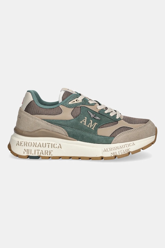 Эти кроссовки из коллекции Aeronautica Militare изготовлены из комбинации замши, текстиля и синтетических материалов. Эти лёгкие и удобные кроссовки идеально подходят для повседневной носки. - Слегка затвердевший нос. - Усиленный задник с мягким наполнителем защищает пятку от истирания. - Классическая шнуровка позволяет индивидуально подогнать обувь по ноге. - Съемная, легко чистящаяся текстильная вставка. - Резиновая подошва прочная и устойчивая к повреждениям. - Длина вставки: 26,5 см. - Размеры указаны для размера: 41.