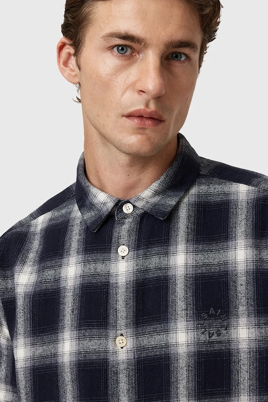 Эта футболка AllSaints сшита из ткани с узором. Она изготовлена из дышащего хлопка. - Органический хлопок выращивается без использования вредных химикатов, химических пестицидов и искусственных удобрений. - Большой размер. - Длинный рукав. - Крой рукава со спущенной линией плеча не ограничивает подвижность. - Застежка на пуговицы. - Манжеты на пуговицах.