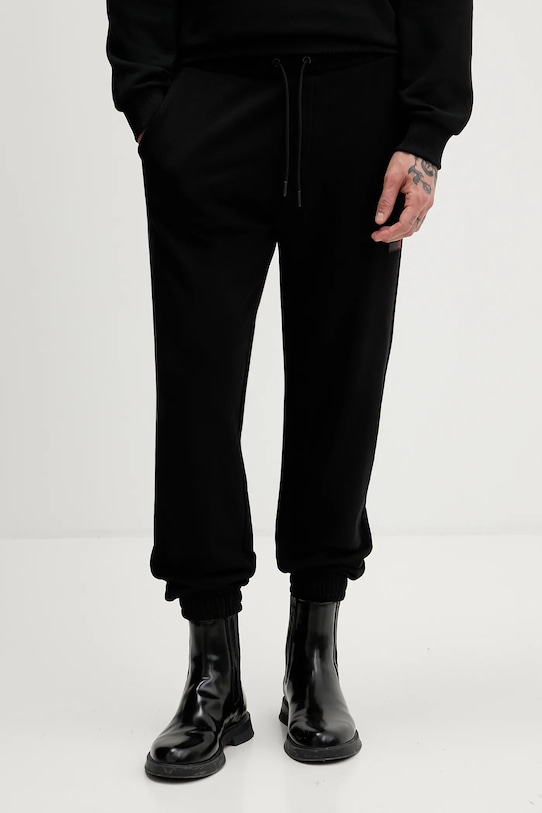 Эти спортивные брюки из коллекции HUGO изготовлены из тонкой эластичной ткани, изготовленной из исключительно комфортного хлопка. - Изделия линейки WE ACT не менее чем на 60% изготовлены из материалов, полученных более экологичным способом. - Брюки свободные в области бедер и ягодиц. - Крой с зауженными брючинами, не стесняющими движений. - Ножки отделаны удобными эластичными манжетами. - Эластичный пояс и дополнительная регулировка ширины с помощью шнурков для предотвращения сползания во время движения. - Два боковых накладных кармана. - Накладной карман на ягодице. - Ширина талии: 42 см. - Ширина бедер: 56,5 см. - Высота талии: 33 см. - Ширина штанины внизу: 19,5 см. - Ширина штанины: 31,5 см. - Длина внешней части штанины: 104,5 см. - Размеры указаны для размера: M.