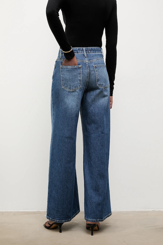 Джинсы из коллекции Answear.Lab, прямого кроя с высокой талией. Изготовлены из комфортного денима. - Джинсы, свободные в области бедер и ягодиц. - Прямая нога полной длины. - Модель с высокой талией, застежкой на пуговицы и молнию. - Три накладных кармана спереди. - Два накладных кармана на ягодицах. - Ширина талии: 36 см. - Ширина бедер: 52 см. - Высота талии: 31 см. - Ширина штанины внизу: 33,5 см. - Ширина штанины: 31,5 см. - Длина штанины: 107 см. - Размеры указаны для размера: S.