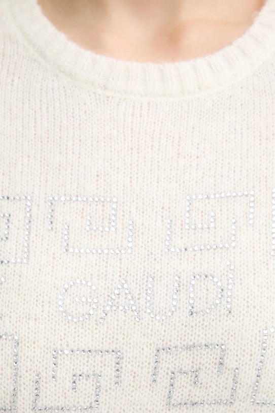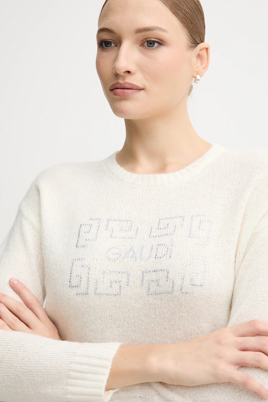 Этот свитер из коллекции Gaudi выполнен из эластичного трикотажа средней плотности. Шерсть обладает естественными дышащими и терморегулирующими свойствами. - Непринужденный стиль. - Крой рукава со спущенной линией плеча не ограничивает подвижность. - Круглый вырез. - Модель с декоративной аппликацией из бусин. - Длина рукава (от горловины): 72 см. - Длина: 62 см. - Ширина под мышками: 53 см. - Размеры указаны для размера: S.