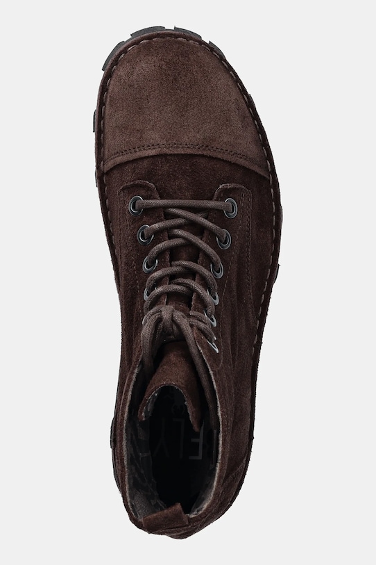 Эти ботинки Fly London изготовлены из замши. Они оснащены прочной и износостойкой резиновой подошвой. - Круглый, жёсткий носок. - Резиновая рифленая подошва долговечна и обеспечивает хорошее сцепление. - Поднятый верх. - Жесткий задник стабилизирует пятку и удерживает ногу в обуви, не давая ей выскальзывать во время движения. - Классическая шнуровка позволяет индивидуально подогнать обувь по ноге. - Длина вставки: 28 см. - Размеры указаны для размера: 43.