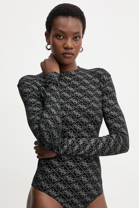 Этот боди из коллекции Guess выполнен из тонкого, эластичного трикотажа. Модель выполнена из исключительно комфортного материала с высоким содержанием вискозы. - Приталенная модель в фасоне боди. - Классический круглый вырез. - Застежка-кнопка в области паха для полной функциональности. - Длина рукава: 63 см. - Длина: 67 см. - Ширина под мышками: 35 см. - Размеры указаны для размера: S.