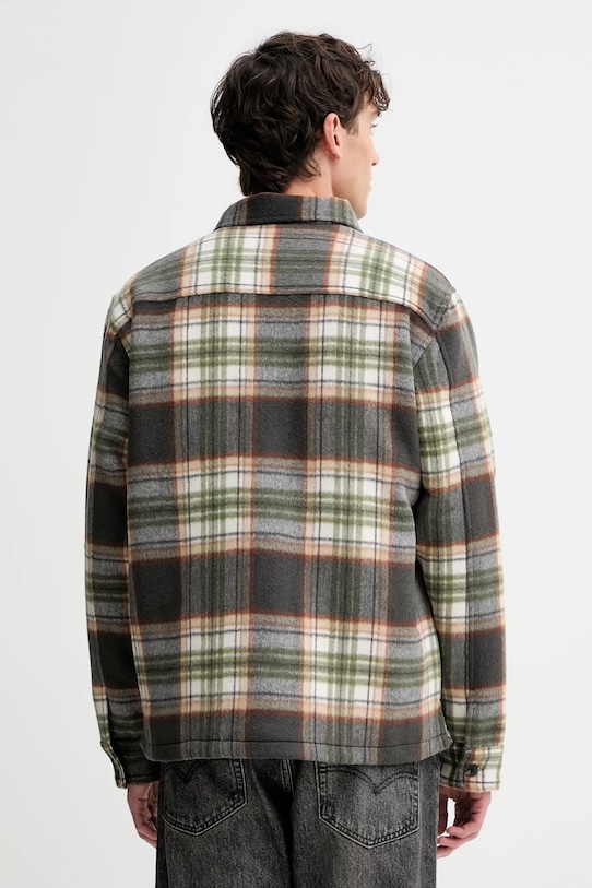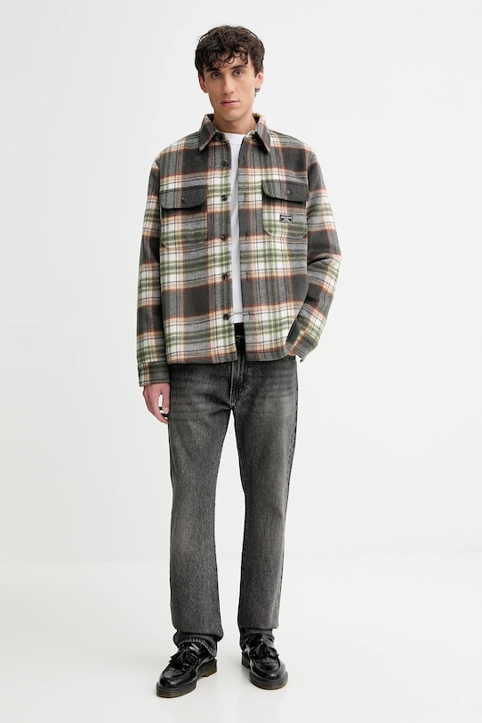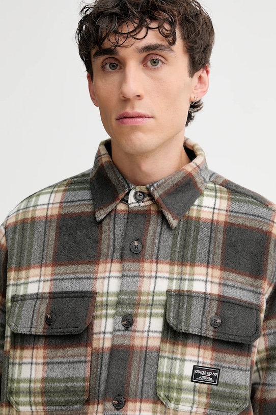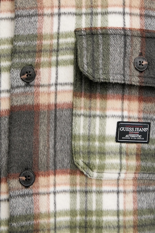 Куртка из коллекции Guess Jeans. Эта модель с лёгким утеплением выполнена из гладкого материала с добавлением шерсти. - Удобная застежка на кнопки позволяет легко надевать и снимать. - Два нагрудных кармана с застежкой на пуговицы. - Манжеты на пуговицах. - Модель с воротником. - Длина: 76 см. - Ширина под мышками: 56 см. - Размеры указаны для размера: M.