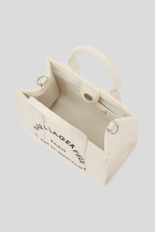Небольшая сумка-тоут из коллекции Karl Lagerfeld. Модель на молнии, выполнена из хлопка. - Органический хлопок выращивается без использования вредных химикатов, химических пестицидов и искусственных удобрений. - Сумка для ношения в руке или на плече. - Магнитная застежка. - Короткие ручки. - Присоединяемый длинный ремешок с регулировкой. - Модель с принтом. - Глубина: 10,5 см. - Ширина у основания: 18,5 см. - Высота: 15 см.