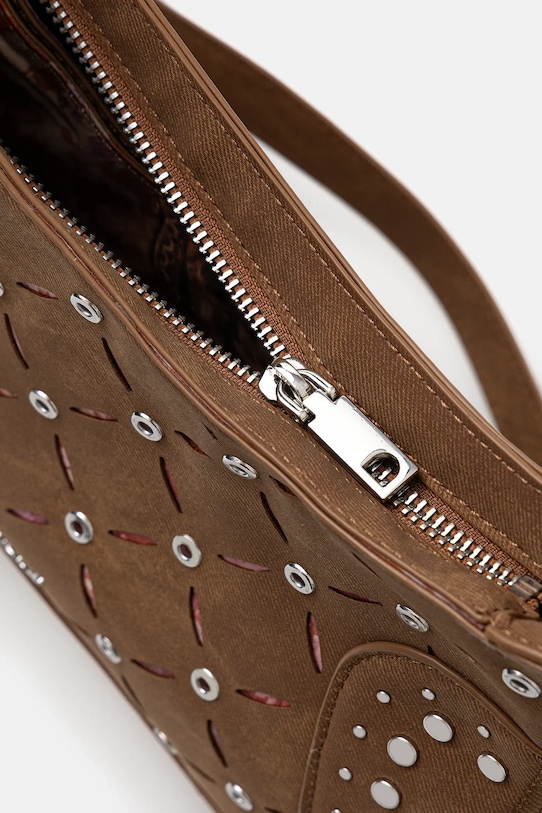Небольшая сумочка из коллекции Desigual. Застёгивается на молнию, выполнена из экокожи. - Застежка-молния. - Имеет три отделения, одно из которых закрывается на магнит. - Внутренний карман на молнии. - Модель на подкладке. - Не подходит для формата А4. - Несъемный, регулируемый ремешок. - Глубина: 3,5 см. - Высота: 20 см. - Ширина у основания: 31,5 см. - Минимальная длина ремешка: 77 см. - Максимальная длина ремня: 97 см.