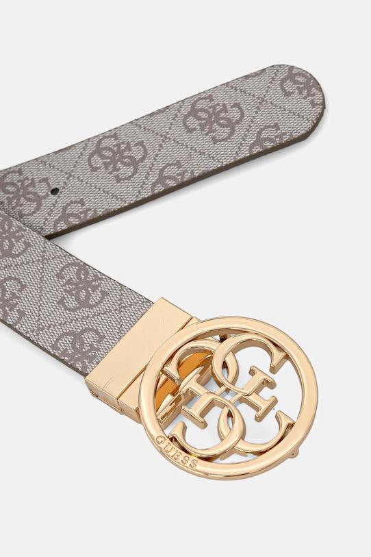 Ремень из коллекции Guess. Модель выполнена из комбинации натуральной и экокожи. - Изделие содержит переработанные волокнистые материалы. - Двусторонняя модель. - Длина ремня от начала пряжки до последнего отверстия: 80 см. - Длина ремешка от штифта до первого отверстия: 90 см. - Количество отверстий: 5. - Ширина ремешка: 3,5 см. - Длина ремешка: 100 см. - Размеры указаны для ремня размера: S.