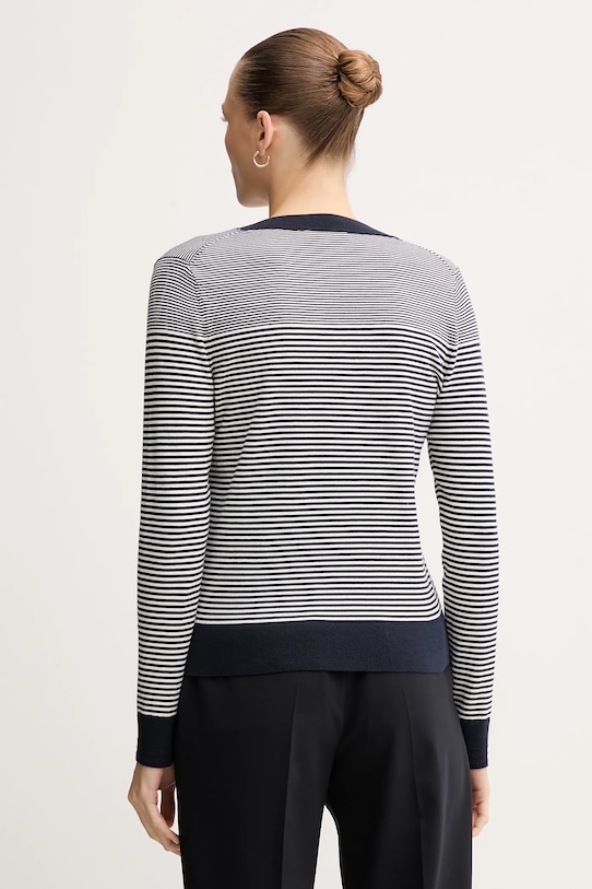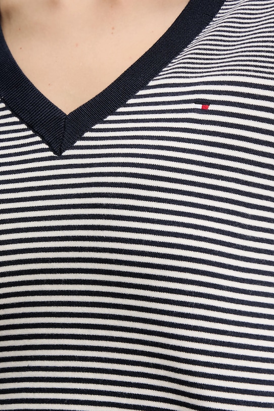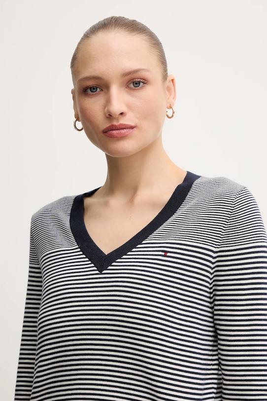 Этот свитер Tommy Hilfiger выполнен из тонкого трикотажа. Он изготовлен из исключительно комфортного материала с высоким содержанием хлопка. - Экологически чистый переработанный хлопок снижает воздействие на окружающую среду за счет сокращения использования химикатов и экономии воды и энергии, улучшая условия жизни и экономическое развитие в регионах производства хлопка. - Простой дизайн, не стесняющий движений. - Декоративный, заостренный вырез. - Рукава и низ изделия отделаны удобными эластичными манжетами. - Тонкий, эластичный трикотаж. - Длина рукава: 61 см. - Длина: 59 см. - Ширина под мышками: 46 см. - Размеры указаны для размера: S.