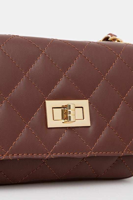 Небольшая сумочка из коллекции Answear.Lab. Изготовлена из натуральной кожи, с застёжкой. - Входящий в комплект тканевый чехол защищает изделие от пыли. - Поворотная застежка. - Внутренний карман на молнии. - Не подходит для формата А4. - Несъемный длинный ремешок с регулировкой. - Минимальная длина ремешка: 65 см. - Максимальная длина ремня: 103 см. - Глубина: 5 см. - Высота: 14 см. - Ширина у основания: 20 см.