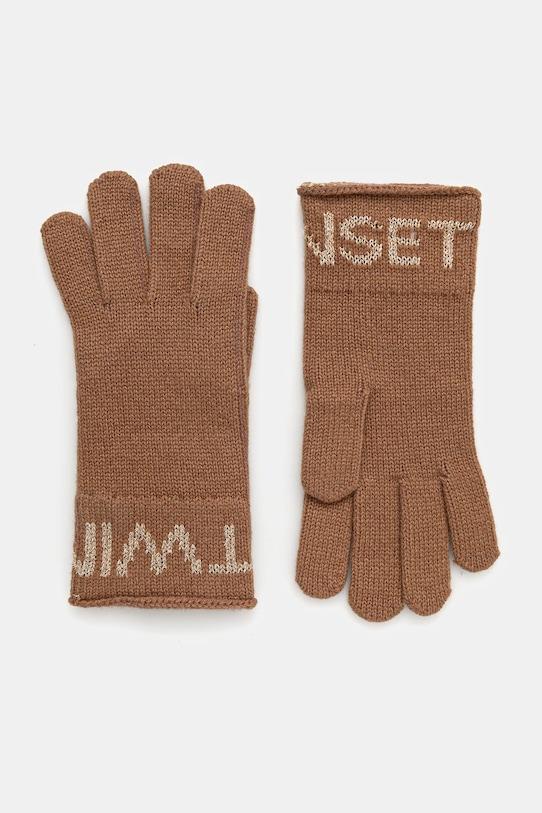 Шерстяные перчатки Twinset, коричневый