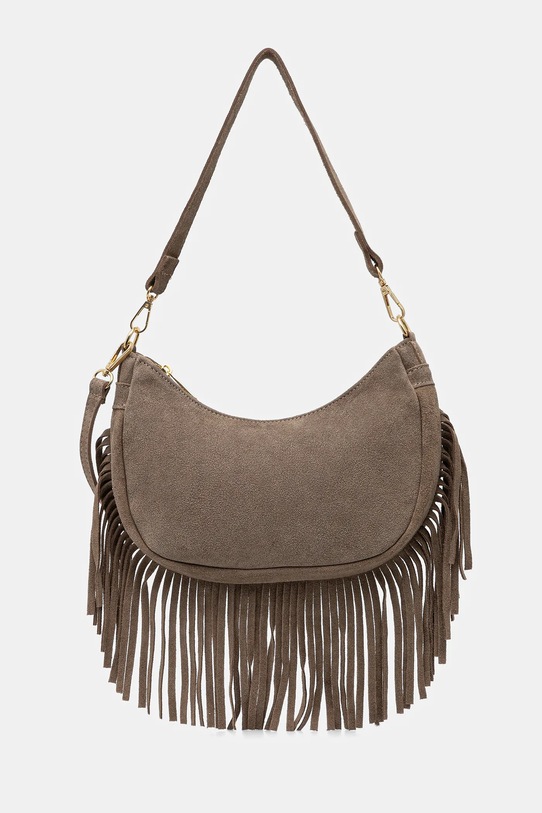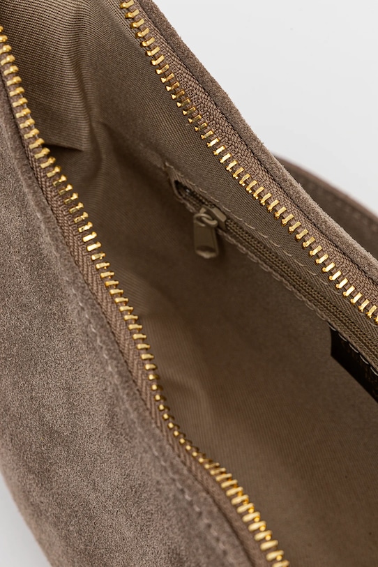 Небольшая сумочка из коллекции Answear.Lab. Застегивается на молнию, выполнена из замши. - Отделение на молнии. - Внутренний карман на молнии. - Модель на подкладке. - Не подходит для формата А4. - Имеет съемную ручку и съемный регулируемый ремень. - Входящий в комплект тканевый чехол защищает изделие от пыли. - Глубина: 6,5 см. - Высота: 14 см. - Ширина у основания: 24 см. - Длина ручки: 52 см. - Минимальная длина ремешка: 63 см. - Максимальная длина ремня: 115 см.