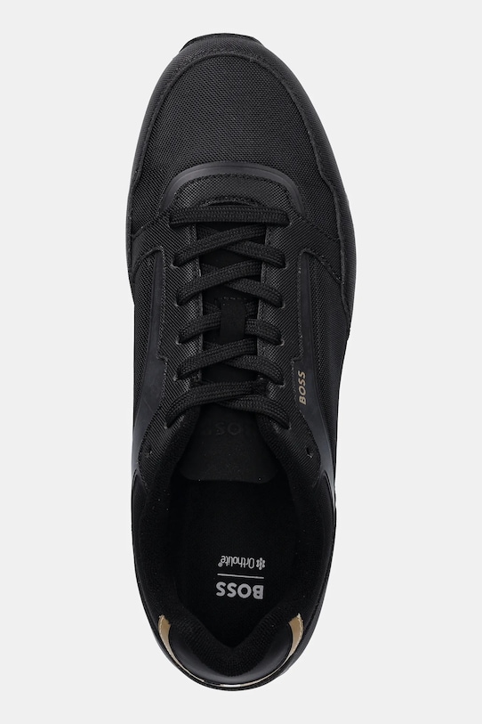 Эти кроссовки из коллекции BOSS изготовлены из комбинации синтетических и текстильных материалов. Они лёгкие и удобные, идеально подходят для повседневной носки. - OrthoLite - это стелька специальной формы, обеспечивающая комфорт и амортизацию при ходьбе. Пена антибактериальна и обеспечивает правильный отвод влаги, предотвращая потливость ног. - Круглый, слегка утолщенный носок. - Жесткий задник стабилизирует пятку и удерживает ногу в обуви, не давая ей выскальзывать во время движения. - Плоские шнурки устраняют давление на подъем стопы, обеспечивая хорошую посадку и комфорт. - Текстильная внутренняя часть комфортна для ног и облегчает содержание обуви в чистоте. - Резиновая подошва прочная и устойчивая к повреждениям. - Длина вставки: 27 см. - Размеры указаны для размера: 42.