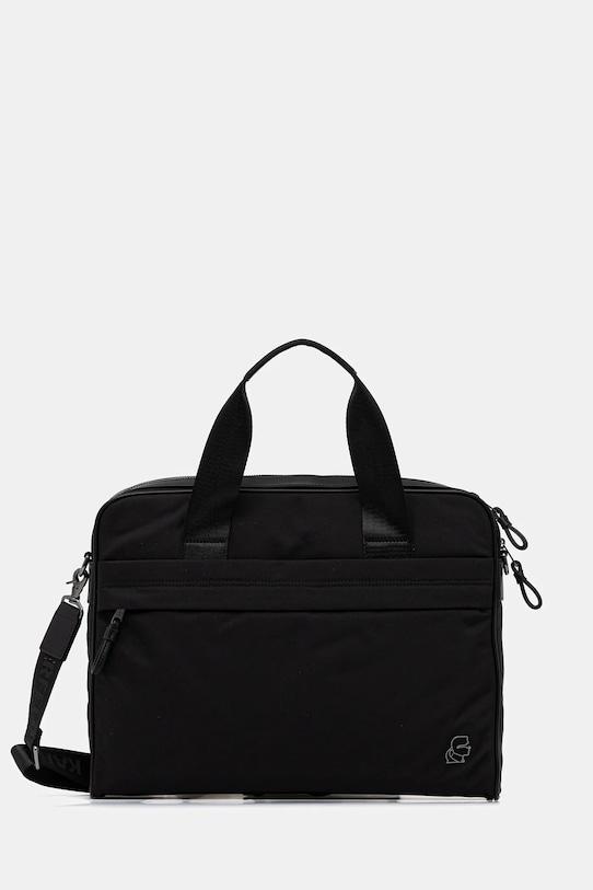 Эта сумка из коллекции Karl Lagerfeld. Она изготовлена из комбинации синтетического материала и экокожи. - Застежка-молния. - Передний карман на кнопке позволяет легко и безопасно хранить телефон или другие мелкие предметы. - Карман на кнопке на задней стороне позволяет легко хранить мелкие предметы. - Карман на молнии спереди позволяет безопасно хранить телефон и другие мелкие предметы. - Имеет отделение для ноутбука или планшета. - Имеет два внутренних кармана: один прорезной, другой на молнии. - Модель на подкладке. - Вмещает формат А4. - Имеет ручки и съемный регулируемый ремень. - Минимальная длина ремешка: 94 см. - Максимальная длина ремня: 150 см. - Длина ручки: 56 см. - Глубина: 7 см. - Высота: 30 см. - Ширина у основания: 40 см.