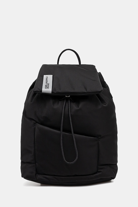 Рюкзак из коллекции Karl Lagerfeld Jeans. Изготовлен из текстильного материала. - Изделие содержит переработанные волокнистые материалы. - Вмещает формат А4. - Основное отделение затягивается шнурком. - Клапан застегивается на магнит. - Накладной карман спереди. - Внутренний карман на молнии. - Регулируемые ремни позволяют индивидуально подгонять их длину под пользователя. - Глубина: 15,5 см. - Высота: 38 см. - Ширина у основания: 30 см.