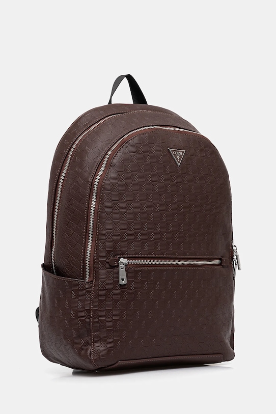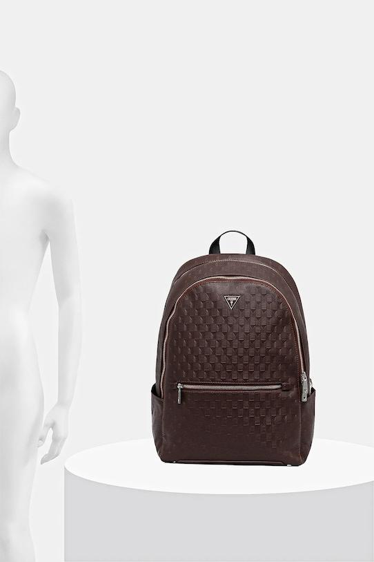 Рюкзак из коллекции Guess. Изготовлен из синтетического материала. - Продукция Guess Eco разработана таким образом, чтобы производить как можно меньше отходов без ущерба для качества и долговечности. - Двухкамерная модель. - Застежка-молния. - Ремешок на задней панели позволяет прикрепить к ручке чемодана. - Рукоятка. - Регулируемая длина ремня. - Передний карман. - Вмещает формат А4. - Количество внутренних карманов на молнии: 1. - Количество внутренних накладных карманов: 7. - Глубина: 16 см. - Высота: 45 см. - Ширина у основания: 31 см.