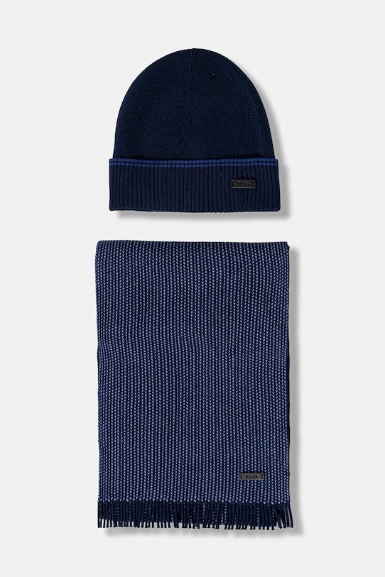 Шапка и шарф с шерстью Boss, темно-синий