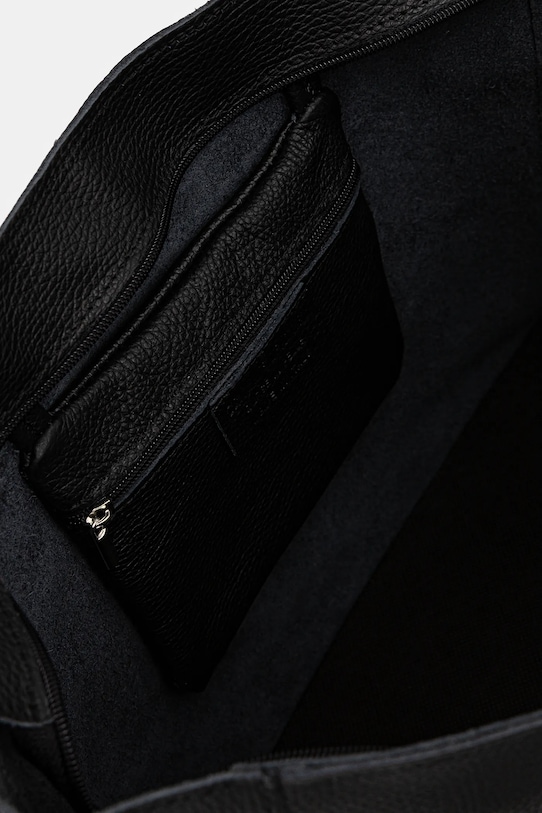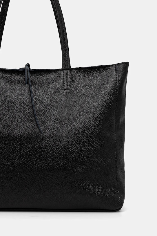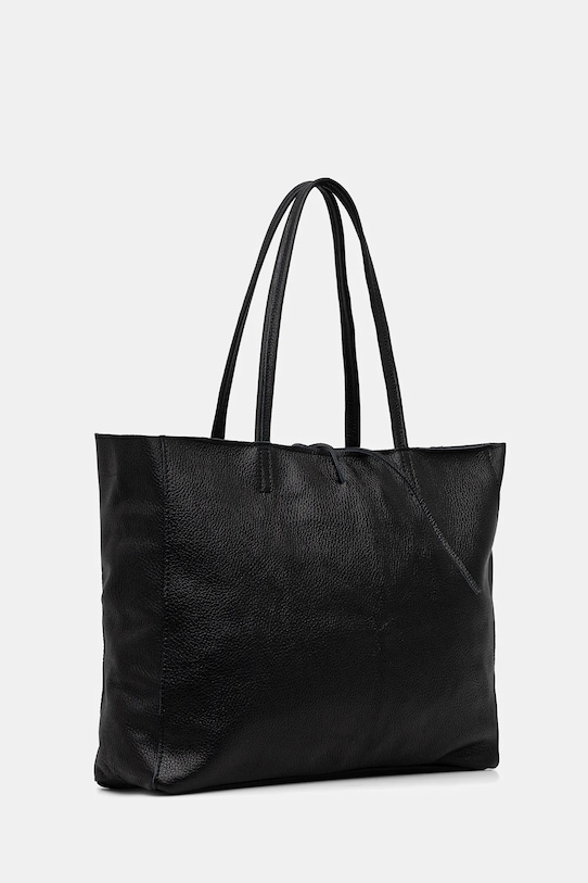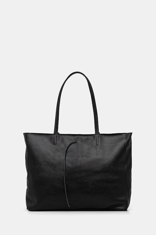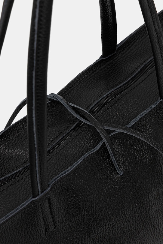 Большая сумка из коллекции Answear.Lab. Модель на молнии из натуральной кожи. - Отделение с завязкой и застежкой-молнией. - Модель без подкладки. - Усиленное дно сумки позволяет изделию долго сохранять форму. - Внутренний карман на молнии. - Длинные ручки для удобной переноски в руке или на плече. - Вмещает формат А4. - Входящий в комплект тканевый чехол защищает изделие от пыли. - Длина ручки: 55 см. - Глубина: 12 см. - Высота: 30 см. - Ширина у основания: 36 см.