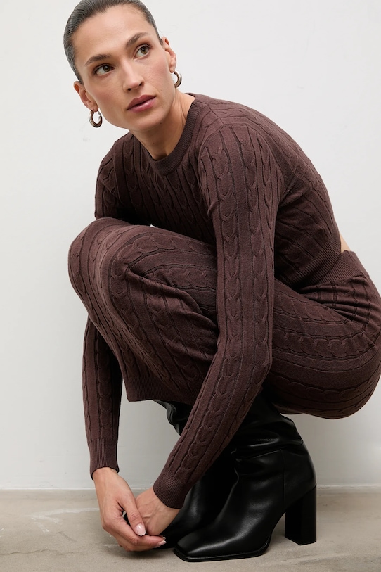 Свитер и юбка Answear.Lab выполнены из эластичного трикотажа средней плотности. Модель выполнена из дышащего материала с высоким содержанием вискозы. - Приталенный крой, подчеркивающий силуэт. - Круглый ребристый вырез. - Длинный рукав. - Рукава и низ изделия отделаны манжетами для защиты от неблагоприятных погодных условий. - Высокая талия обеспечивает комфорт во время занятий спортом и позволяет визуально стройнить фигуру. - Эластичный пояс предотвращает скольжение во время движения. - Нижний край отделан эластичной резинкой, благодаря чему изделие лучше прилегает к телу и удобно в носке. - Гладкая трикотажная ткань. - Длина рукава: 64 см. - Длина: 42 см. - Ширина под мышками: 38 см. - Ширина талии: 34 см. - Длина юбки: 94 см. - Указаны размеры: S/M.