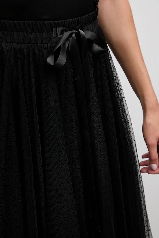 Эта юбка из коллекции Answear.LAB выполнена из тюля. Полиэстер обеспечивает повышенную устойчивость к сминанию. - Расклешенный крой. - Дополнительный слой материала в виде подкладки. - Высокая талия обеспечивает комфорт во время занятий спортом и позволяет визуально стройнить фигуру. - Эластичный пояс предотвращает скольжение во время движения. - Декоративная завязка на талии. - Ширина талии: 30 см. - Длина: 95 см. - Указаны размеры: S/M.