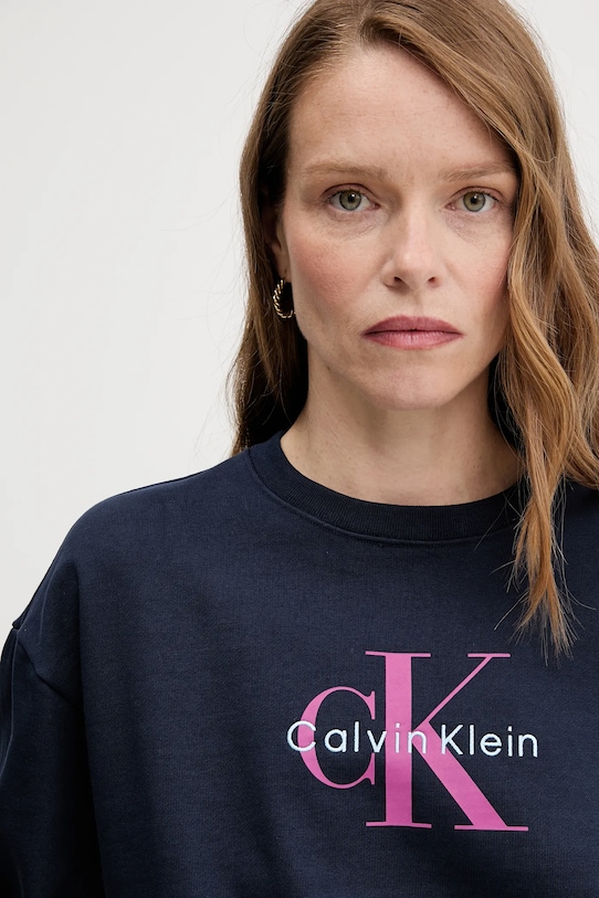 Эта толстовка из коллекции Calvin Klein Jeans выполнена из тонкой, слегка эластичной ткани. Эта модель выполнена из исключительно комфортного и дышащего материала, идеально подходящего для теплого времени года. - Свободный крой, обеспечивающий полную свободу движений. - Длинный рукав. - Крой рукава со спущенной линией плеча не ограничивает подвижность. - Классический круглый вырез. - Рукава и низ изделия отделаны удобными эластичными манжетами. - Модель с декоративной аппликацией и принтом. - Длина: 61 см. - Ширина под мышками: 55 см. - Размеры указаны для размера: S.