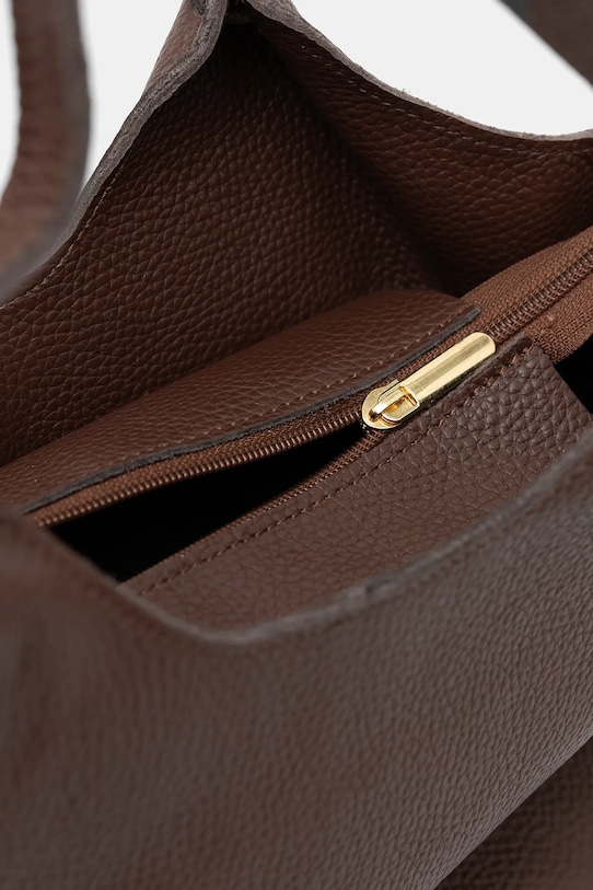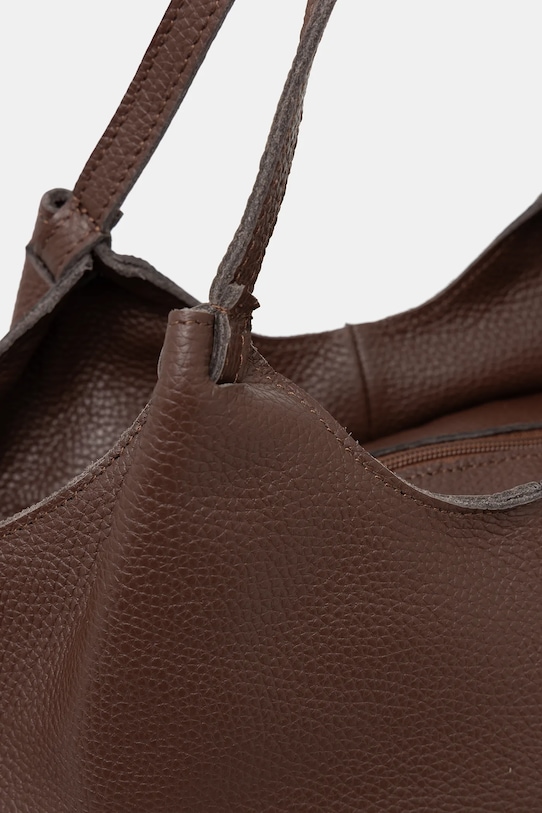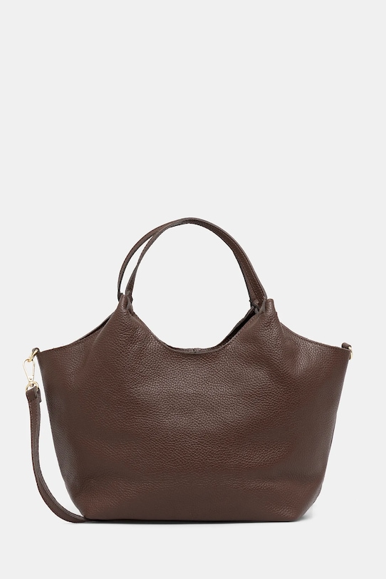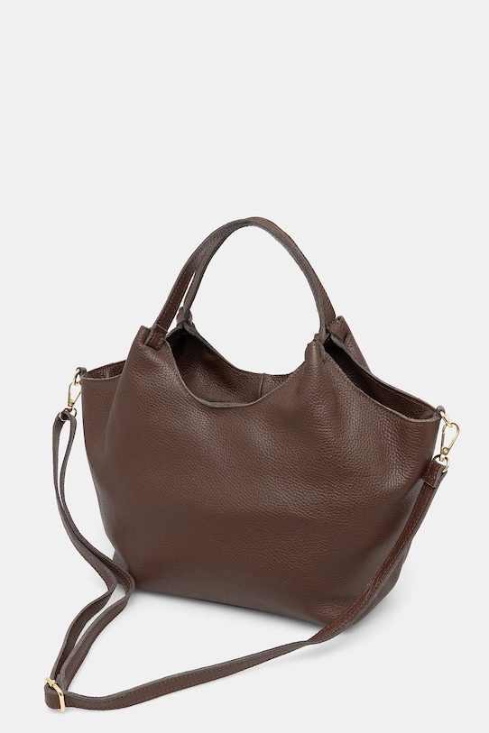 Сумка среднего размера из коллекции Answear.Lab. Изготовлена из натуральной кожи, с застёжкой. - Входящий в комплект тканевый чехол защищает изделие от пыли. - Отделение на молнии. - Вмещает формат А4. - Имеет ручки и два съемных регулируемых ремня. - Внутренний карман на молнии. - Модель на подкладке. - Минимальная длина ремешка: 76 см. - Максимальная длина ремня: 130 см. - Длина ручки: 33 см. - Глубина: 11 см. - Высота: 26 см. - Ширина у основания: 25 см. - Ширина в самом широком месте: 33 см.