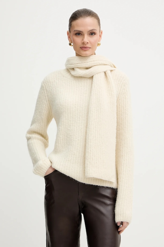 Свитер из коллекции Morgan, выполнен из плотной трикотажной ткани. В комплект входит шарф. - Изделие содержит переработанные волокнистые материалы. - Свободный крой, обеспечивающий полную свободу движений. - Классический круглый вырез. - Плотная, эластичная трикотажная ткань. - Длина рукава: 65 см. - Длина: 58 см. - Ширина под мышками: 48 см. - Размеры указаны для размера: S.
