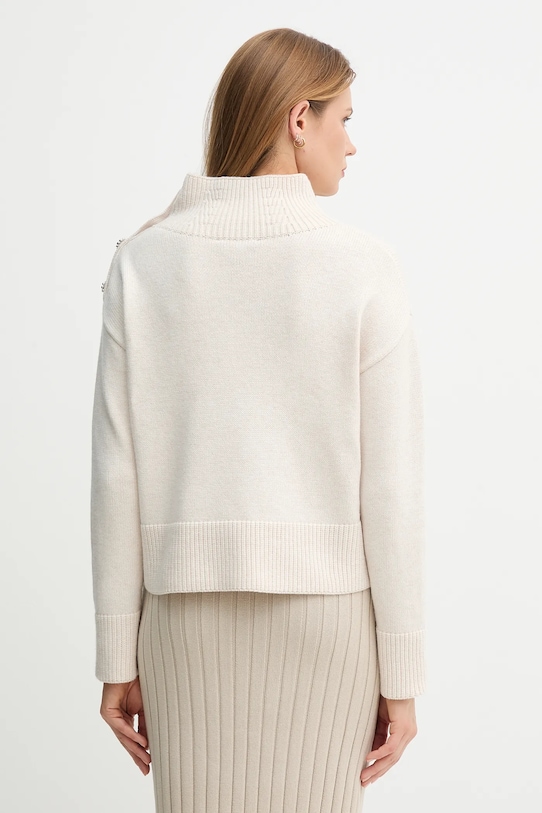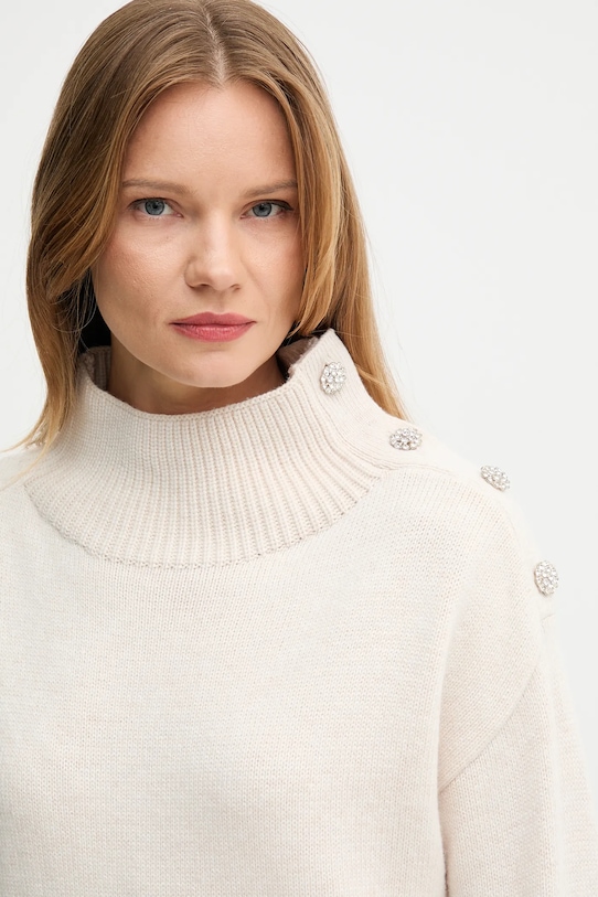 Этот свитер из коллекции OUI выполнен из гладкого, эластичного трикотажа. Высокие терморегулирующие свойства шерсти позволяют согреться в холод и охладиться в жару. - Свободный крой, обеспечивающий полную свободу движений. - Модель с водолазкой. - Застежка на короткие пуговицы обеспечивает эффективную вентиляцию и легкость надевания и снимания. - Длинный рукав. - Крой рукава со спущенной линией плеча не ограничивает подвижность. - Рукава и низ изделия отделаны манжетами для защиты от неблагоприятных погодных условий. - Трикотаж средней толщины. - Длина рукава (от горловины): 68 см. - Длина: 56 см. - Ширина под мышками: 56 см. - Размеры указаны для размера: 36.