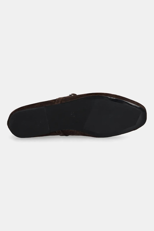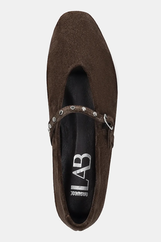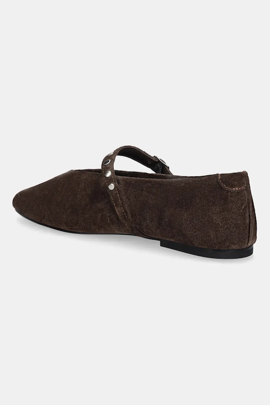 Балетки из коллекции Answear.LAB, изготовленные из замши. Модель с усиленным верхом обеспечивает устойчивость. - Сужающийся, жесткий нос. - Жесткий задник стабилизирует пятку и удерживает ногу в обуви, не давая ей выскальзывать во время движения. - Резиновая подошва прочная и устойчивая к повреждениям. - Модель с кожаной внутренней частью, которая удобна для стопы и предотвращает натирание, потертости и появление неприятного запаха. - Контурная стелька поддерживает свод стопы и обеспечивает длительный комфорт. - Застежка-пряжка со штифтом для индивидуальной подгонки. - Длина вставки: 23 см. - Размеры указаны для размера: 37.