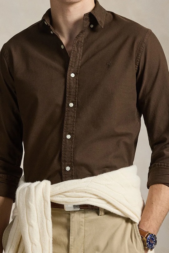 Хлопковая рубашка Polo Ralph Lauren, коричневый
