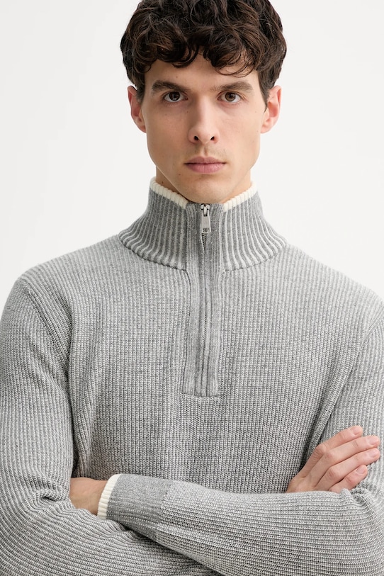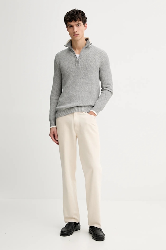 Этот свитер Marc O'Polo выполнен из эластичного трикотажа средней плотности. Он изготовлен из исключительно комфортного материала с высоким содержанием хлопка. - Этот продукт сертифицирован по стандарту ответственного производства шерсти (RWS). Материал содержит шерсть, полученную с ферм, имеющих независимую сертификацию на соответствие требованиям к благополучию животных и землепользованию. - Этот свитер прямого кроя обеспечивает комфорт и универсальный вид. Он мягко облегает фигуру, не перетягивая её. Классический и простой, он прекрасно сочетается как с элегантными, так и с повседневными образами. - Водолазка с короткой застежкой-молнией. - Рукава и низ изделия отделаны удобными эластичными манжетами. - Длина рукава: 67 см. - Длина: 75 см. - Ширина под мышками: 56 см. - Размеры указаны для размера: M.