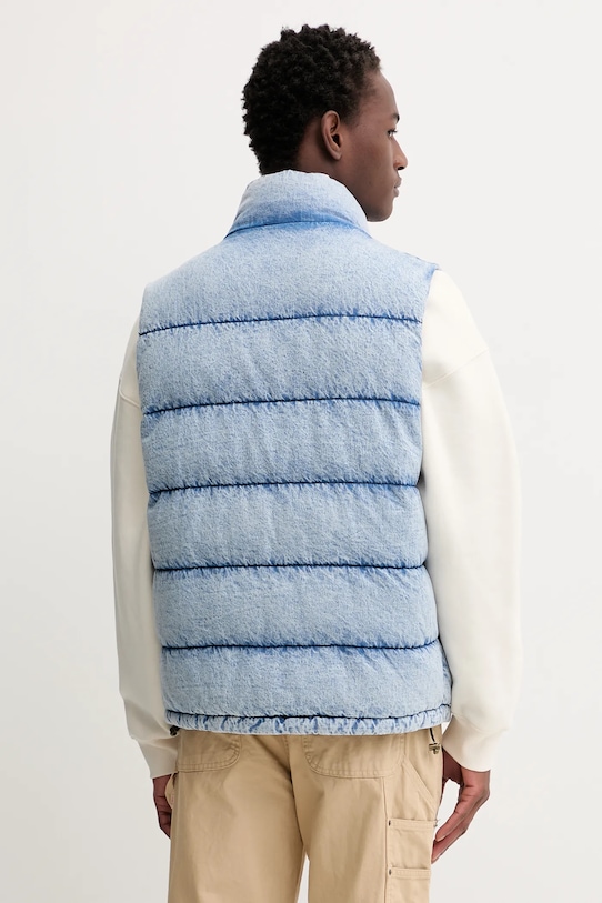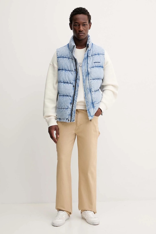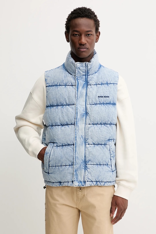 Жилет из коллекции Guess Jeans. Эта утеплённая модель выполнена из денима и отличается исключительно комфортным и высококачественным материалом. - GUESS JEANS использует переработанные материалы для изготовления своей продукции, не ставя под угрозу ее качество и долговечность. - Простой дизайн, не стесняющий движений. - Поднятый воротник обеспечивает дополнительную защиту от холода. - Молния по всей длине с внутренними и внешними ветрозащитными клапанами. - Два прорезных боковых кармана на молнии. - Дополнительные внутренние карманы позволяют безопасно хранить мелкие предметы. - Нижний край отделан завязками, обеспечивающими индивидуальную посадку. - Длина: 67 см. - Ширина под мышками: 61 см. - Размеры указаны для размера: M.