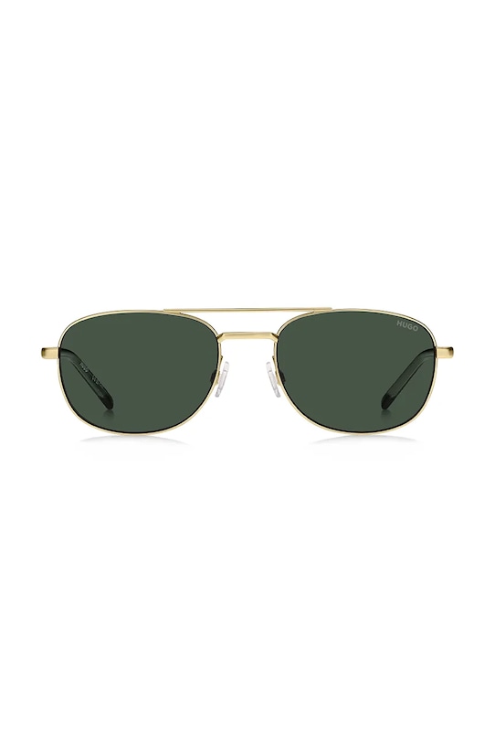 Солнцезащитные очки из коллекции HUGO. Модель с гладкими линзами и металлической оправой. Защита от ультрафиолета UV 400. - Форма оправы: авиатор. - Защита от ультрафиолета. - В комплект модели входит тряпочка для протирки стекол. - Модель упакована в фирменную коробку. - Категория 3 (пропускает 8–18% света) - самая распространённая и универсальная категория затемняющих фильтров. Очки категории 3 идеально подходят для повседневного использования в солнечные дни и для отдыха в жарких странах. - Ширина рамы: 143 мм. - Ширина линзы: 56 мм.