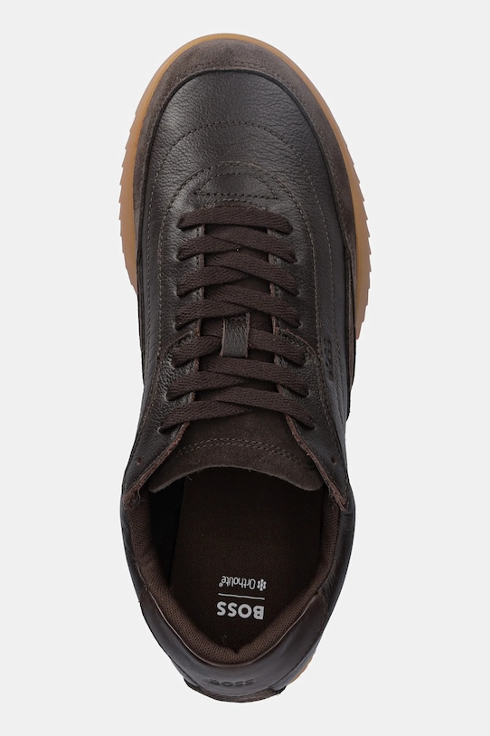 Кроссовки из коллекции BOSS из натуральной кожи. Лёгкие и удобные, идеально подходят для повседневной носки. - OrthoLite - это стелька специальной формы, обеспечивающая комфорт и амортизацию при ходьбе. Пена антибактериальна и обеспечивает правильный отвод влаги, предотвращая потливость ног. - Круглый, мягкий нос. - Мягкий задник защищает пятку от истирания. - Плоские шнурки устраняют давление на подъем стопы, обеспечивая хорошую посадку и комфорт. - Текстильная внутренняя часть комфортна для ног и облегчает содержание обуви в чистоте. - Резиновая подошва прочная и устойчивая к повреждениям. - Длина вставки: 27,5 см. - Размеры указаны для размера: 43.