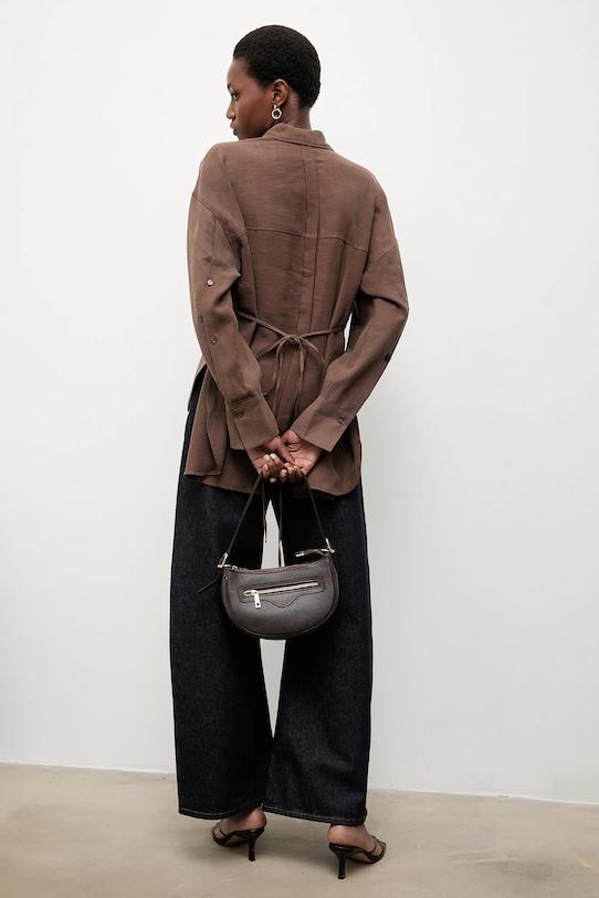 Эта рубашка Answear.Lab изготовлена из гладкой дышащей ткани с высоким содержанием лиоцелла. - Лиоцелл - это волокно из древесной целлюлозы, которое производится в ходе экологически устойчивого процесса производства, без использования токсичных веществ. - Рубашка свободного кроя отличается свободным кроем, обеспечивает комфорт и не стесняет движений. - Модель с воротником. - Застежка на пуговицы. - Модель с переплетом. - Крой рукава со спущенной линией плеча не ограничивает подвижность. - У него есть прорези. - Длинный рукав. - Удлиненный задний край обеспечивает защиту во время движения. - Нагрудный карман. - Длина рукава (от воротника): 77 см. - Длина спереди: 64 см. - Длина спинки: 80 см. - Ширина под мышками: 60 см. - Размеры указаны для размера: S.