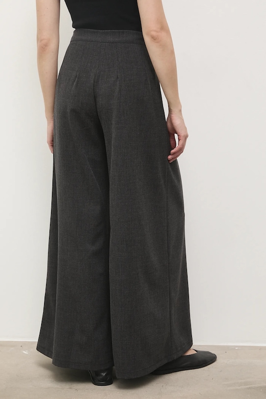 Брюки из коллекции Answear.LAB из гладкой ткани. - Свободный крой, обеспечивающий полную свободу движений. - Материал с декоративными складками. - Модель с высокой талией, застежкой на пуговицы и молнию. - Накладные карманы. - Тонкая, слегка эластичная ткань. - Ширина талии: 33 см. - Ширина бедер: 76 см. - Высота талии: 31 см. - Ширина штанины внизу: 43 см. - Ширина штанины: 41 см. - Длина по внутреннему шву: 76 см. - Размеры указаны для размера: S.