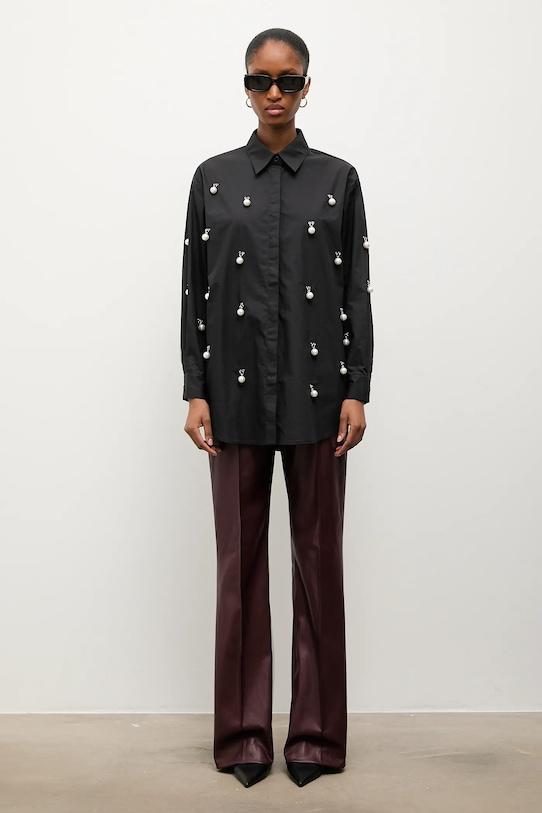 Эта рубашка Answear.Lab выполнена из ткани с аппликацией. Она изготовлена из исключительно комфортного хлопка. - Простой дизайн, не стесняющий движений. - Удобная застежка на кнопки позволяет легко надевать и снимать. - Модель с воротником. - Крой рукава со спущенной линией плеча не ограничивает подвижность. - Манжеты на пуговицах. - Декоративные детали. - Длина рукава (от воротника): 70 см. - Длина: 73 см. - Ширина под мышками: 55 см. - Указаны размеры: S/M.