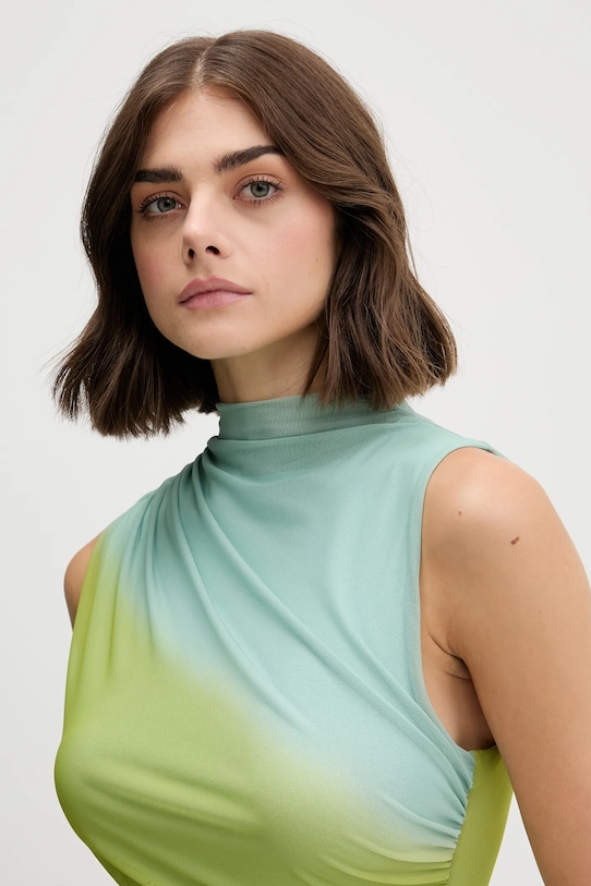 Это платье из коллекции Desigual выполнено из тонкого эластичного трикотажа. Содержание полиэстера делает ткань менее мнущейся.