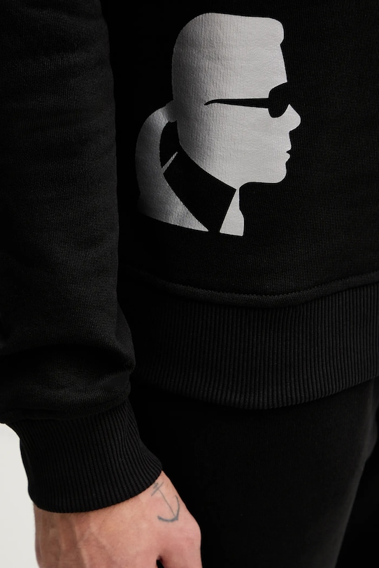 Эта толстовка Karl Lagerfeld выполнена из трикотажного полотна с принтом. Она изготовлена из исключительно комфортной хлопковой ткани. - Простой дизайн, не стесняющий движений. - Классический круглый вырез. - Тонкий, эластичный трикотаж. - Рукава и низ изделия отделаны манжетами для защиты от неблагоприятных погодных условий. - Длина рукава: 64 см. - Длина: 68 см. - Ширина под мышками: 59 см. - Размеры указаны для размера: M.