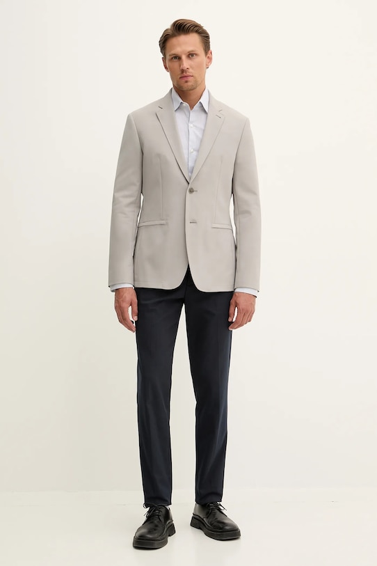 Этот пиджак Calvin Klein выполнена из тонкой, слегка эластичной ткани. Полиэстер обеспечивает лучшую устойчивость к сминанию. - Изделие содержит переработанные волокнистые материалы. - Несминаемый материал обеспечивает простоту ухода. - Специальная отделка материала улавливает и нейтрализует запахи, обеспечивая длительную свежесть. - Простой дизайн, не стесняющий движений. - Дополнительный слой материала в виде подкладки. - Классические лацканы. - Длинный рукав. - Однобортный пиджак с застежкой на пуговицы. - Два кармана на молнии спереди для удобного хранения мелких предметов. - Дополнительные внутренние карманы позволяют безопасно хранить мелкие предметы. - Разрезы сзади обеспечивают свободу движений и лучшую посадку материала. - Длина рукава: 65 см. - Длина: 78 см. - Ширина под мышками: 54 см. - Ширина плеч: 47 см. - Размеры указаны для размера: M.