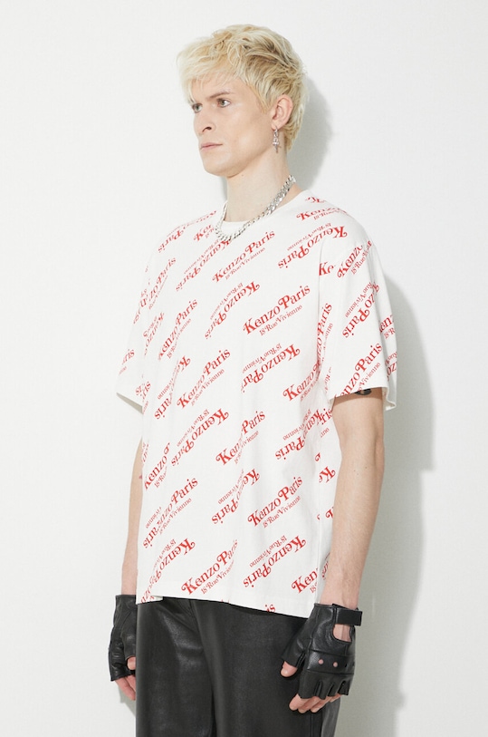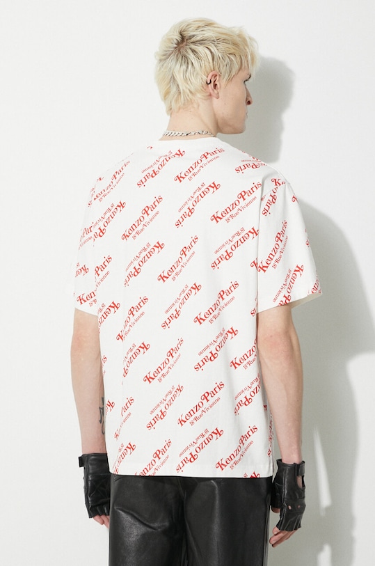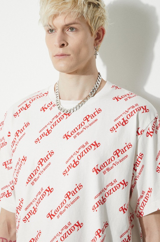 Эта футболка из коллекции Kenzo выполнена из ткани с рисунком. Модель выполнена из исключительно комфортной хлопковой ткани. - Большой размер. - Крой рукава со спущенной линией плеча не ограничивает подвижность. - Круглый ребристый вырез. - Плотная, эластичная трикотажная ткань. - Длина: 75 см. - Ширина под мышками: 50 см. - Размеры указаны для размера: L.