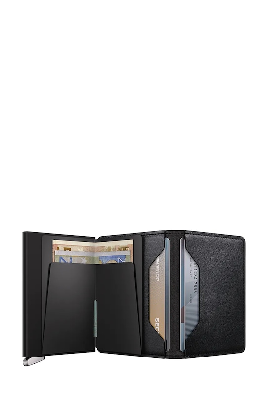 Небольшой кошелек из коллекции Secrid. Изготовлен из натуральной кожи. RFID Protect – защита от кражи электронных данных. Эта модель оснащена специальным покрытием из никеля, меди и никеля, которое защищает данные RFID от несанкционированного считывания (RFID = Radio Frequency Identification). Такие данные хранятся, например, на кредитных картах, новых удостоверениях личности, паспортах и мобильных устройствах – телефонах, смартфонах, планшетах и т. д. Кошельки Secrid изготовлены из высококачественных материалов с использованием уникальных техник тщательно отобранными производителями в Нидерландах. Их компактный дизайн сочетает в себе элегантность и комфорт. - Отделения для карт. - Отделения для купюр. - Размеры: 6,8 х 10,2 х 1,6 см. Механизм Cardprotector изготовлен из анодированного алюминия, пластика и нержавеющей стали. Он позволяет извлекать карты одним лёгким движением, а алюминий защищает карты от повреждений и нежелательного беспроводного трафика.