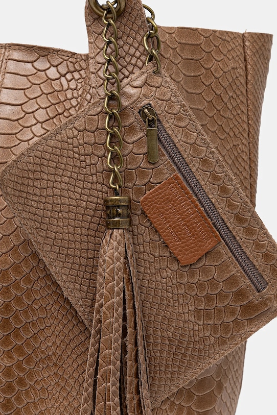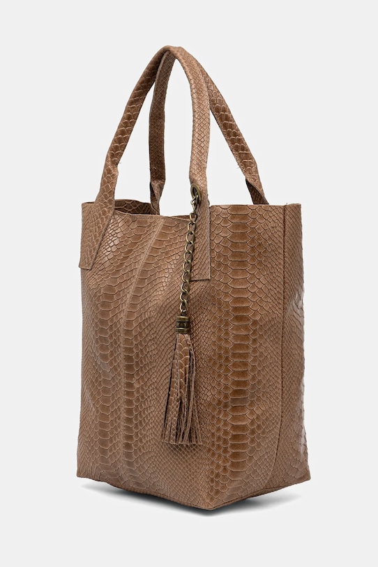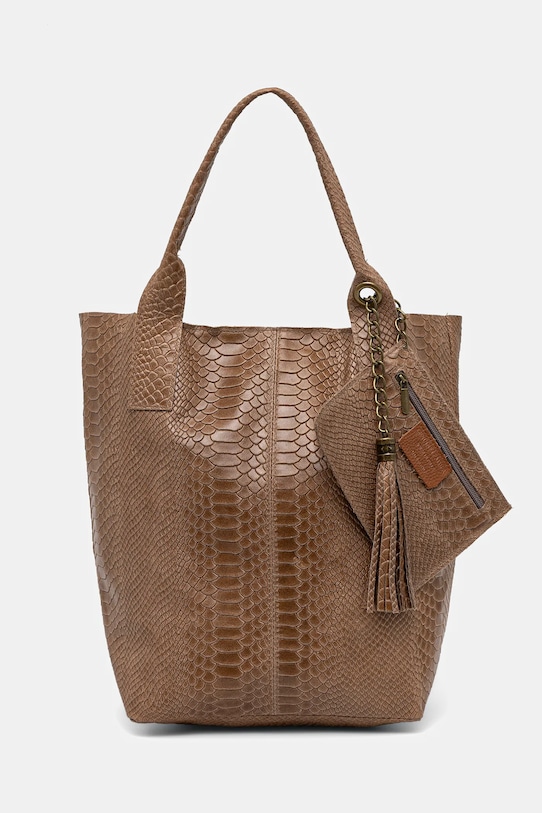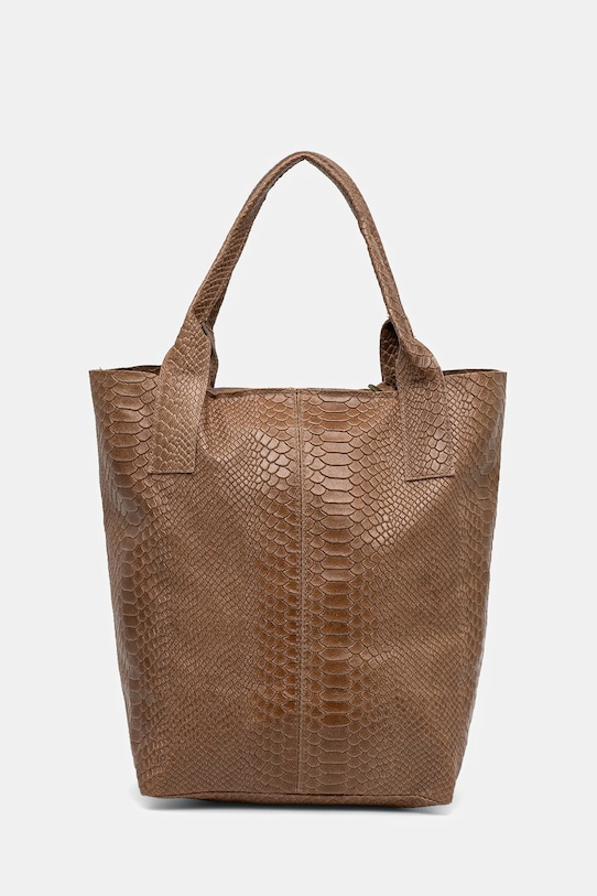 Сумка среднего размера из коллекции Answear.Lab. Модель на молнии, выполнена из натуральной кожи. - Застежка-молния. - Внутренних карманов нет. - Съемный мешочек позволяет хранить необходимые предметы. - Длинная ручка для удобной переноски в руке или на плече. - Модель без подкладки. - Не подходит для формата А4. - Входящий в комплект тканевый чехол защищает изделие от пыли. - Длина ручки: 46 см. - Глубина: 18 см. - Высота: 34,5 см. - Ширина у основания: 25 см.