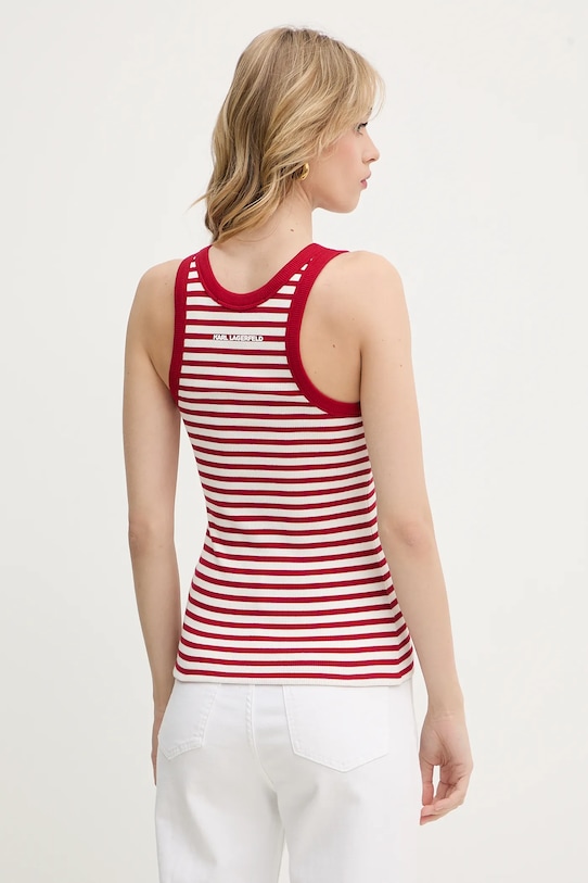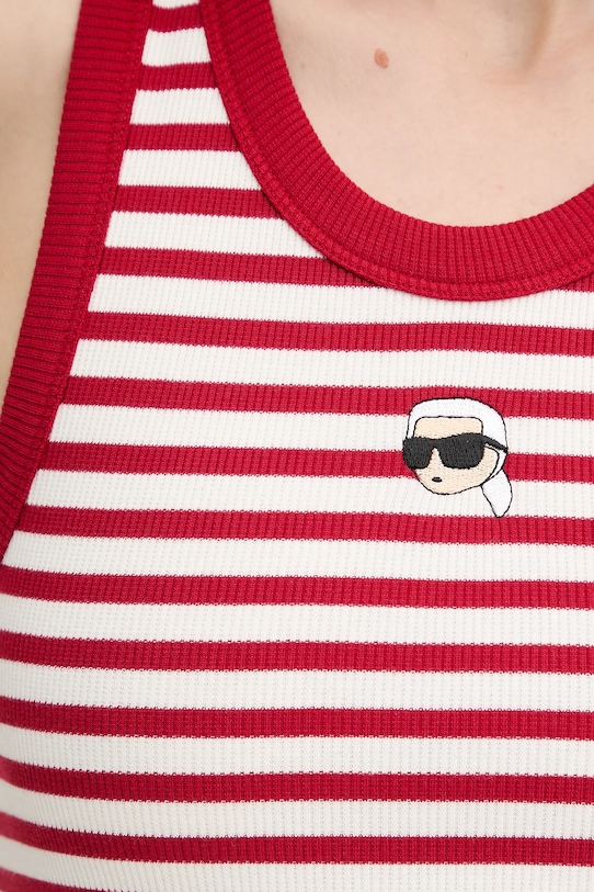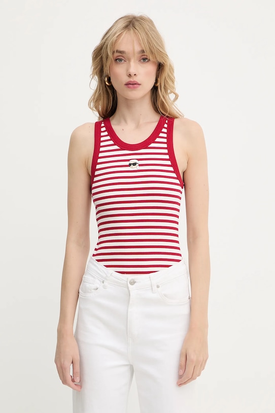 Топ из коллекции Karl Lagerfeld. Изготовлен из эластичной хлопковой ткани. - Органический хлопок выращивается без использования вредных химикатов, химических пестицидов и искусственных удобрений. - Приталенный крой. - Классический круглый вырез. - Нерегулируемые, несъемные лямки. - Тонкий, эластичный трикотаж. - Узорчатое трикотажное полотно.