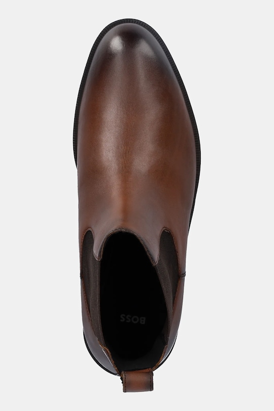Ботинки челси из коллекции BOSS, изготовленные из натуральной кожи. Верх из непористой ткани легко чистится влажной тканью. - Сужающийся, жесткий нос. - Жесткий задник стабилизирует пятку и удерживает ногу в обуви, не давая ей выскальзывать во время движения. - Резиновая подошва прочная и устойчивая к повреждениям. - Контурная стелька поддерживает свод стопы и обеспечивает длительный комфорт. - Текстильная подкладка предотвращает раздражение и обеспечивает высокий комфорт при ношении. - Задняя петля и эластичные вставки позволяют легко надевать и снимать. - Длина вставки: 26 см. - Размеры указаны для размера: 41.