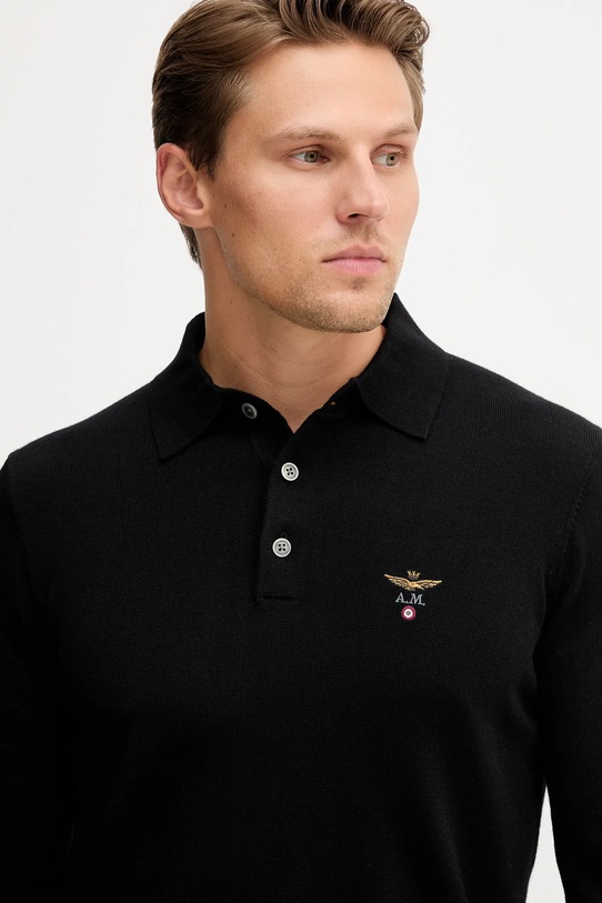 Этот свитер из коллекции Aeronautica Militare выполнен из эластичного трикотажа. Высокие терморегулирующие свойства шерсти позволяют сохранять тепло в холод и прохладу в жару. - Простой дизайн, не стесняющий движений. - Застежка на короткие пуговицы обеспечивает эффективную вентиляцию и легкость надевания и снимания. - Модель с мягким воротником. - Рукава и нижний край отделаны удобными эластичными манжетами. - Вышитый логотип бренда на груди. - Длина рукава: 68,5 см. - Длина: 69,5 см. - Ширина под мышками: 55 см. - Размеры указаны для размера: M.