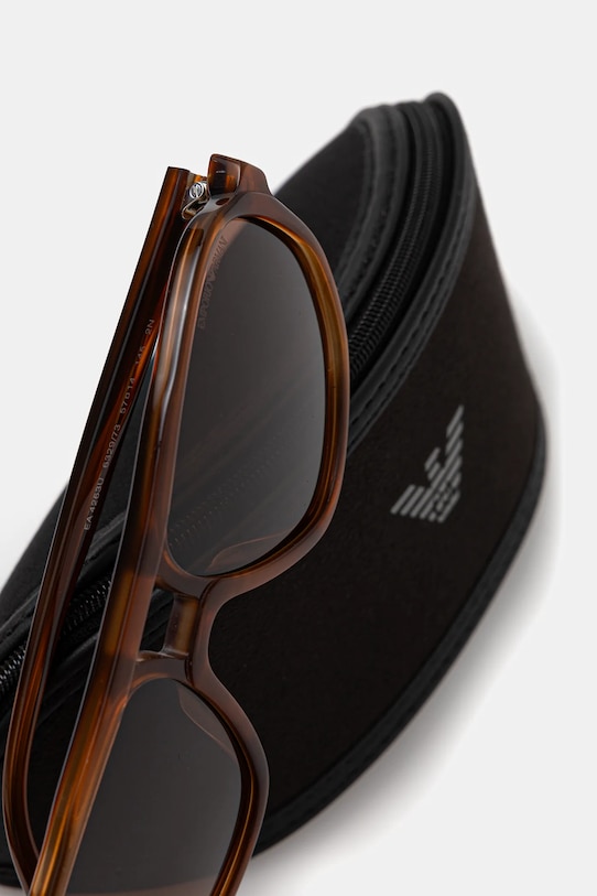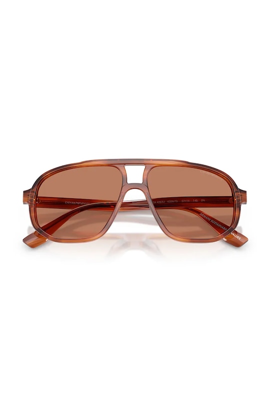 Солнцезащитные очки из коллекции Emporio Armani. Модель с гладкими линзами и пластиковой оправой. Защита от ультрафиолета UV 400. - Изготовлено в соответствии с ценностями устойчивого развития Armani с использованием переработанных материалов. Кроме того, при производстве использовано меньше химикатов, а количество отходов после производства значительно сокращено. - Форма оправы: авиатор. - Фильтр UV 400 обеспечивает максимальную защиту от солнечного излучения. - Категория 3 (пропускает 8–18% света) - самая распространённая и универсальная категория затемняющих фильтров. Очки категории 3 идеально подходят для повседневного использования в солнечные дни и для отдыха в жарких странах. - В комплект модели входят чехол и салфетка для протирки очков. - Ширина рамы: 145 мм. - Ширина линзы: 55 мм.