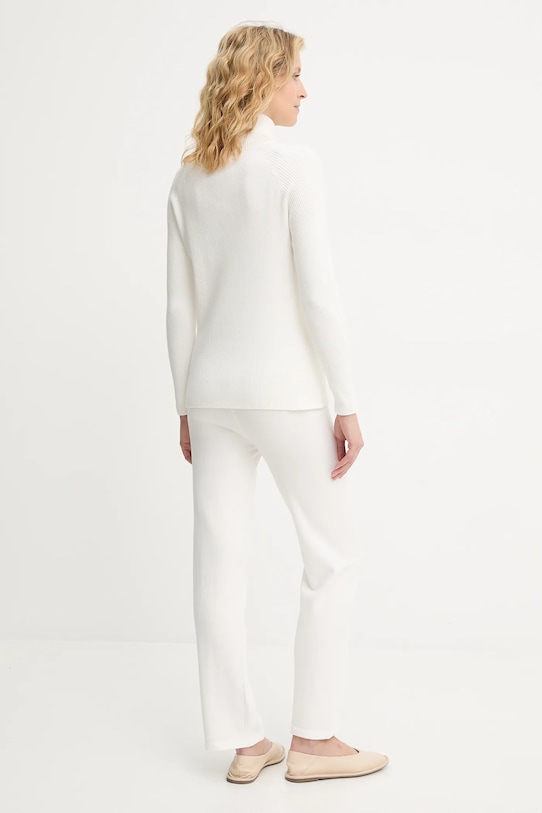 Этот спортивный костюм из коллекции Answear.LAB выполнен из эластичного трикотажного полотна. Кашемировая шерсть обладает отличными терморегулирующими свойствами, отличается исключительной лёгкостью и пушистостью. - В комплект входят свитер и брюки. - Модель с высоким воротом. - Рукава реглан благодаря своей конструкции обеспечивают большую свободу движений. - Простой дизайн, не стесняющий движений. - Удобный эластичный пояс. - Длина рукава (от воротника): 62 см. - Длина: 64 см. - Ширина под мышками: 44 см. - Ширина талии: 34,5 см. - Ширина бедер: 37 см. - Высота талии: 34,5 см. - Ширина штанины: 24 см. - Ширина штанины внизу: 19 см. - Длина внешней части штанины: 106 см. - Размеры указаны для размера: S.