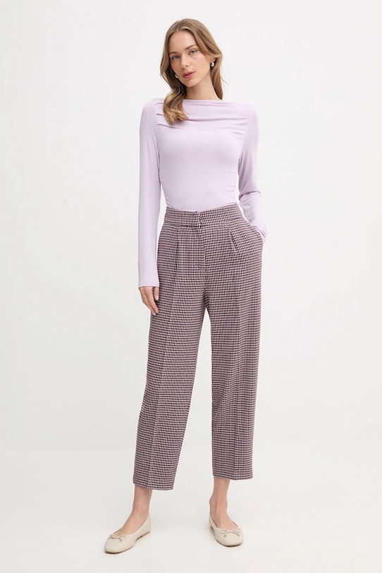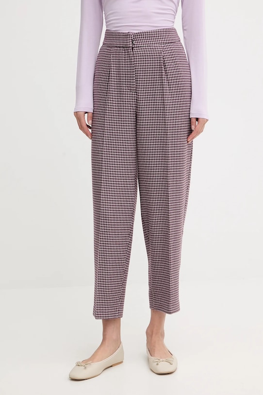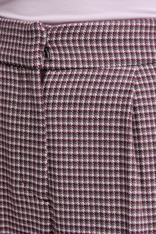 Брюки из коллекции United Colors of Benetton из ткани с рисунком. Полиэстер обеспечивает повышенную устойчивость к сминанию. - Модель с высокой талией, застежкой на молнию, пуговицы и крючок. - Два боковых накладных кармана. - Модель со складками. - Штанина отутюживается в складку. - Ширина талии: 29 см. - Ширина бедер: 41 см. - Высота талии: 32 см. - Ширина штанины: 30 см. - Ширина штанины внизу: 18,5 см. - Длина по внутреннему шву: 63 см. - Размеры указаны для размера: 38.