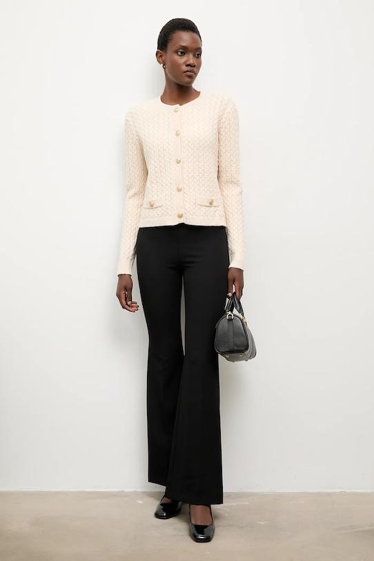 Брюки из коллекции Answear.LAB из тонкой, слегка эластичной ткани. Полиэстер обеспечивает повышенную устойчивость к сминанию. - Брюки облегают бедра и ягодицы. - Модель с высокой талией и потайной застежкой-молнией. - Штанина отутюживается в складку. - Ширина талии: 32 см. - Ширина бедер: 43 см. - Высота талии: 31 см. - Ширина штанины внизу: 29 см. - Ширина штанины: 26 см. - Длина по внутреннему шву: 81 см. - Размеры указаны для размера: S.