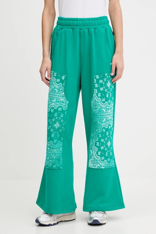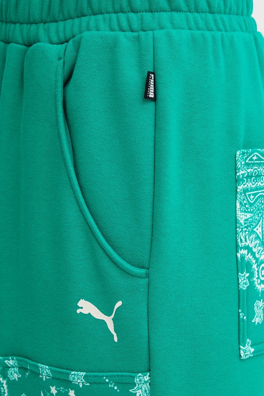 Эти спортивные брюки из коллекции Puma изготовлены из эластичной ткани с рисунком. Модель имеет мягкую подкладку по центру для дополнительной мягкости и комфорта. - Модель из линейки продукции Puma Forever Better, изготовленная из переработанных материалов. - Брюки свободные в области бедер и ягодиц. - Мягкая внутренняя отделка обеспечивает высокий комфорт использования и оптимальный тепловой комфорт. - Эластичный пояс и дополнительная внутренняя регулировка ширины с помощью шнурков для предотвращения сползания во время движения. - Расклешенные штанины. - Два накладных кармана спереди для удобного хранения мелких предметов. - Карман на спинке, где можно хранить телефон или другие необходимые предметы. - Ширина талии: 36 см. - Ширина бедер: 54 см. - Высота талии: 36 см. - Ширина штанины внизу: 34 см. - Ширина штанины: 31 см. - Длина внешней части штанины: 107 см. - Размеры указаны для размера: S.